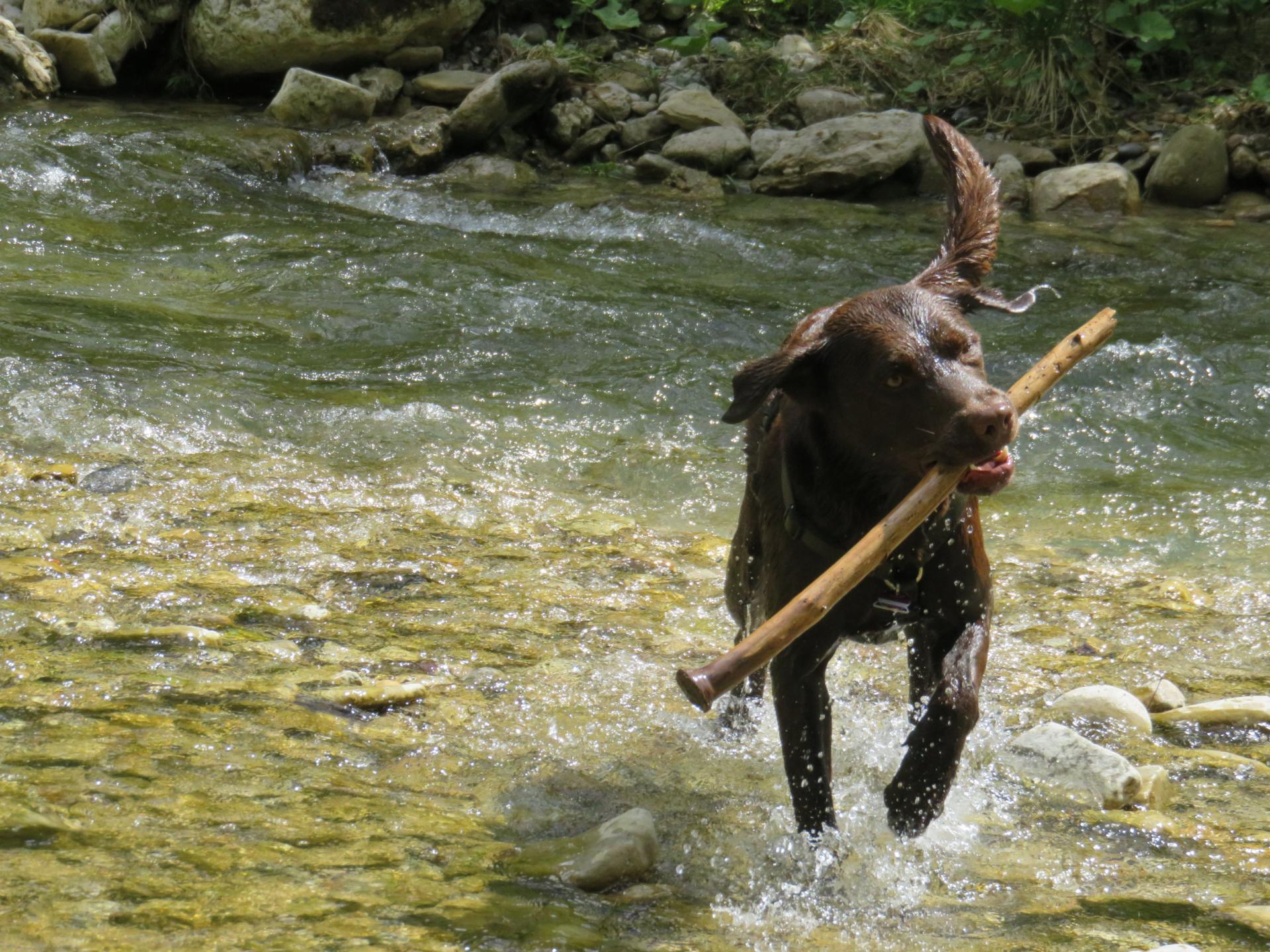 Mein Name ist Rico und ich bin Euer Gastgeber. Geboren bin ich am 10.01.2015 als sechster von neun Geschwistern nahe den Eibele Wasserfällen – i bin a Einheimischer. Ich bin ein gutaussehender, schokobrauner, durchtrainierter und nicht kastrierter Labradorrüde im besten Alter. Am Anfang etwas (zu) stürmisch, aber dann nur noch verschmust. Schon als Welpe wurde ich fast 2 Jahre bei der Oberallgäuer Rettungshundestaffel u.a. auf Mantrailing und an Geräten ausgebildet. Bei mir gibt es kein Halten, wenn ich einen Wurfball sehe oder ein Gewässer in der Nähe ist. Beides zusammen ist das grösste Hundeglück, vor allem wenn mein Servicepersonal mit mir zum Alpsee fährt und ich eine Stunde frei rennen und schwimmen kann oder wir zusammen im Pool herumtollen.
